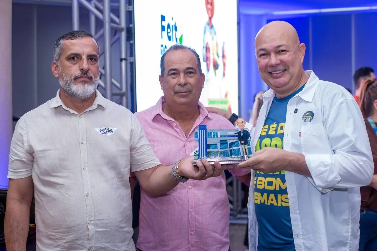 O prefeito de Rio Branco, Tião Bocalom, aproveitou a presença de diversas autoridades nacionais durante a inauguração do SBT News, realizada nesta sexta-feira (12), no auditório do Estúdio