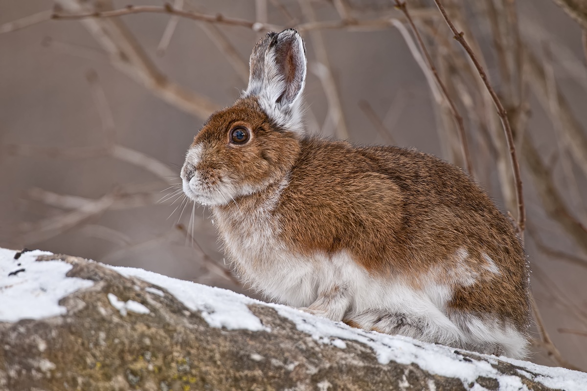 Quando a neve vai embora, a terra e as rochas passam a ficar mais aparentes e a coloração marrom-avermelhada é suficiente para “esconder” as lebres e confundir os predadores.