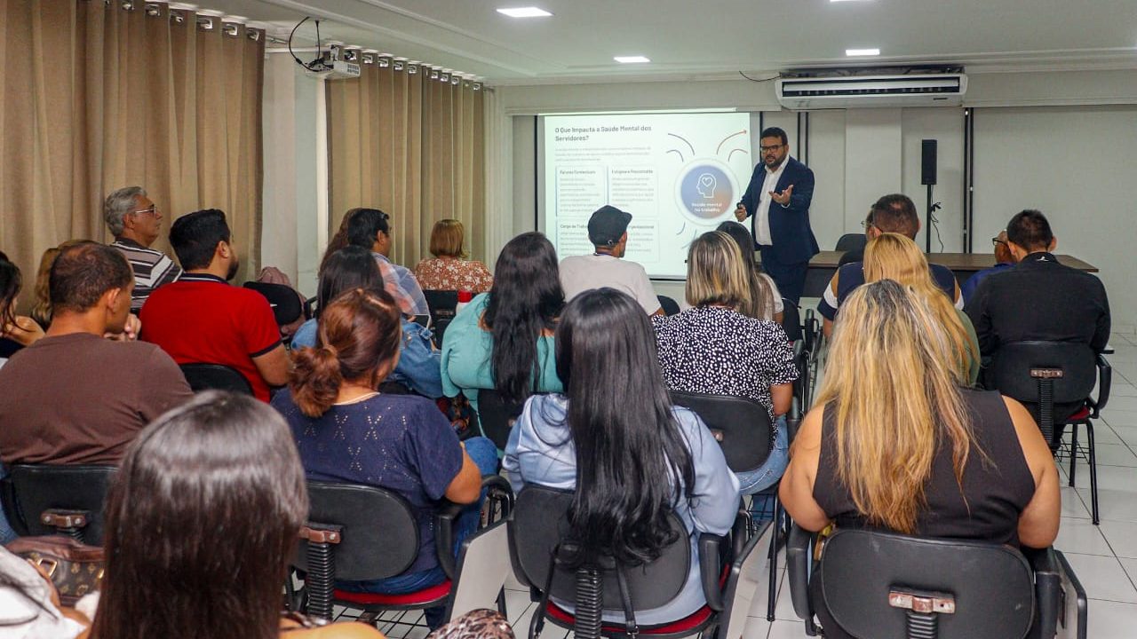 Nesta segunda-feira (28), os servidores participaram da palestra “Saúde mental no serviço público: “como cuidar para não adoecer”, ministrada pelo médico Dr. Pablo Rodrigo, no auditório da Secretaria. O tema destacou a importância do cuidado com a mente e as emoções no ambiente de trabalho.