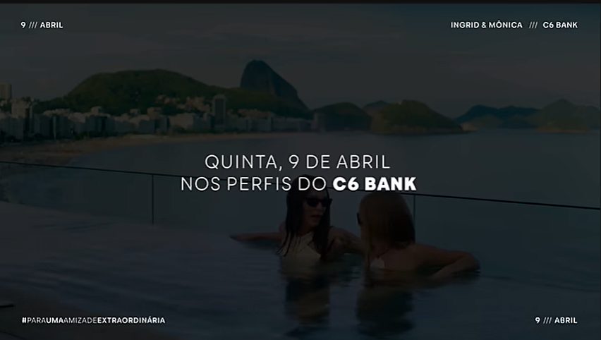 Os episódios completos serão exibidos no YouTube do C6 Bank – “O projeto foi construído a várias mãos, em um processo de cocriação com a diretora, as atrizes e a Tech & Soul. Buscamos criar os roteiros a partir de experiências do cotidiano, explorando a química entre a Ingrid e a Mônica e histórias com as quais as pessoas realmente se identificam. A proposta foi justamente transformar temas do universo financeiro em narrativas autênticas e muito conectadas com o público”, diz Flavio Waiteman, sócio e CCO da Tech & Soul. Os episódios completos serão exibidos no YouTube do C6 Bank, com cortes de 30” e 15” para mídia digital na Meta e no TikTok, em posts colaborativos com as atrizes. A campanha também conta com mídia exterior em relógios de rua, no Rio de Janeiro e em São Paulo, além da presença em elevadores comerciais e residenciais e em academias da rede Bodytech em diferentes estados do país. A estratégia se estende ainda para áudios teaser no Spotify e anúncios na Netflix.