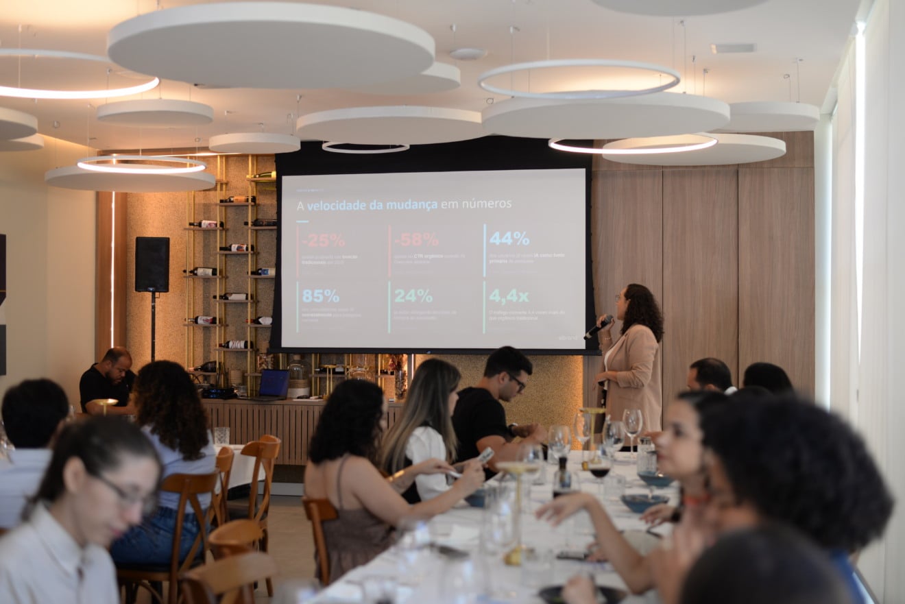 Discutir os impactos da inteligência artificial na forma como as marcas se comunicam e são percebidas. – Com a ascensão da inteligência artificial, passa a ser fundamental entender como as marcas são interpretadas e priorizadas por esses sistemas. “O ponto central da discussão foi entender que a vitrine mudou. Não é mais o usuário que define sozinho o que consome, e isso exige uma nova forma de pensar estratégia. As marcas precisam ser relevantes não só para pessoas, mas também para os algoritmos que mediam essas relações”, explica Mayara Junquilho, Diretora de Operações da ebrand. O encontro foi conduzido pelos diretores Mayara Junquilho (Operações), Diego Gambini (Criação) e Rafael Andaku (Comercial), que abordaram desde o funcionamento atual das plataformas até os caminhos que as marcas precisam considerar para se manterem competitivas nesse novo ambiente. Além do conteúdo, o evento também se destacou pela diversidade de participantes, com a presença de representantes de empresas como Shopping Praia da Costa, Grupo Tristão, Realcafé Reserva, Mixirica, Grupo OQZ, Escola São Domingos, Apex, Fucape, Kuruma, Sebrae, Comprocard e Fortlev Solar, reforçando o interesse do mercado por discussões mais aprofundadas e aplicáveis.